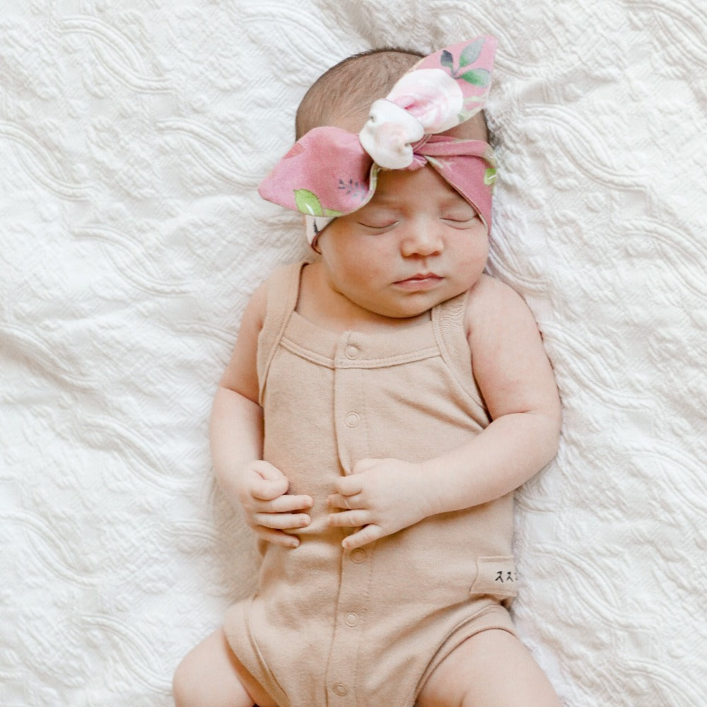 Our Antique Rose Floral Top Knot Headband is a stunning and classic print. It is a gorgeous antique rose colour. This beautiful print also has hints of white, blush and gum green!