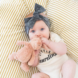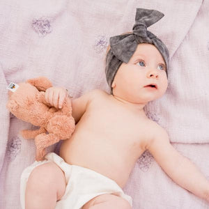 Please note that the small and medium size are the same width as the large version and all of the have a square "bow like" end, instead of our curved leaf style end. All bow knots come untied so that they can be perfectly fitted to you or your child’s head. This bow knot is made from a cotton/elastane fabric, so it has a lovely stretch to it.