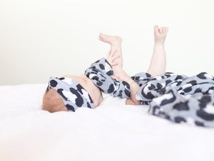 Our Black and Silver Leopard Print Print Turban Headband is made from our very own, exclusive fabric design! These cool, soft and stretchy turban headbands are made from cotton/elastane fabric and are a fun alternative to our traditional headbands. Great for finishing off a casual look and keeping ears warm! There is no tying necessary with these headbands. Please see the sizing guide below and note that the sizing is based on average head size for age.