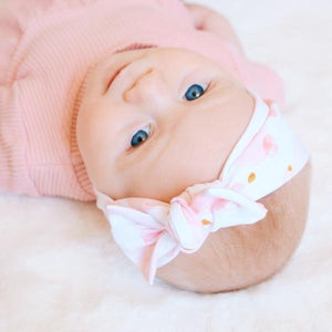 Our Blush Bubbles Print Bow Knot Headband is just gorgeous! These pretty, soft knit fabric bow knot headbands are a fun alternative to our traditional headbands. Great for finishing off a casual look!