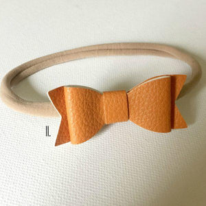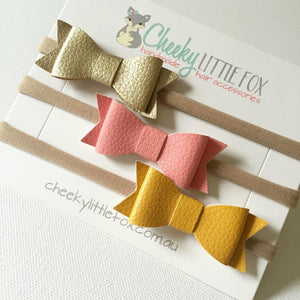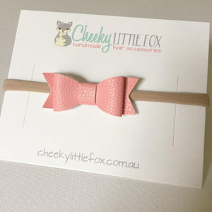 Lola faux leather bow headbands are a new addition to the Cheeky Little Fox family! These gorgeous bows are attached to a nylon headband which is a one size fits all headband. They are designed to grow with your babies head and are lovely and soft.