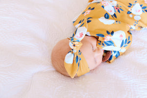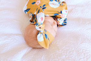 Our Mustard Peony Floral Top Knot Headband is a cute addition to any outift! This beautiful print is really pretty!