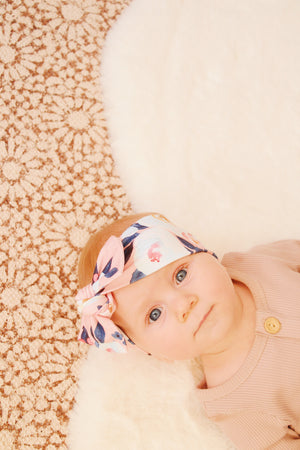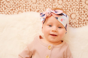 Please note that the bow knot headbands have a square "bow like" end, instead of our curved leaf style end. All bow knots come untied so that they can be perfectly fitted to you or your child’s head. This bow knot is made from a cotton/elastane fabric, so it has a lovely stretch to it.