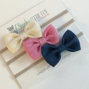 Pippa Burlap Bow Headbands are a new addition to the Cheeky Little Fox family! These gorgeous bows are attached to a nylon headband which is a one size fits all headband. They are designed to grow with your babies head and are lovely and soft.