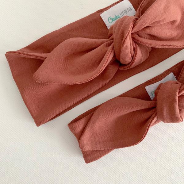Please note that the small and medium size are a slightly skinnier headband than the large version. All top knots come untied so that they can be perfectly fitted to you or your child’s head. This top knot is made from a cotton/elastane fabric, so it has a lovely stretch to it.