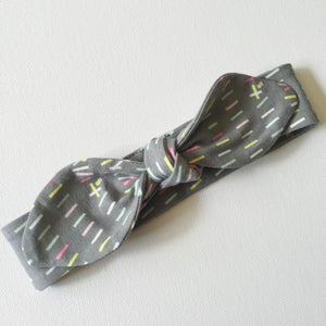 Our Sprinkles in Grey Top Knot is a cute addition to any outift! These funky, soft knit fabric top knot headbands are a fun alternative to our traditional headbands. Great for finishing off a casual look!